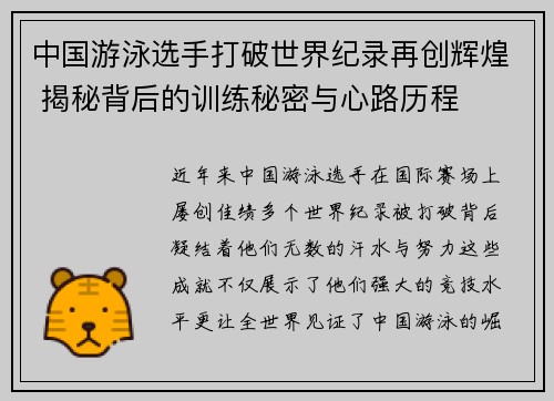 阅读近年来,中国游泳队在国际赛场上不断崭露头角,尤其在各大世界锦标赛上取得了令人瞩目的成绩。近日,中国游泳队再次在世锦赛中展现出了强劲的实力,突破性的打破了三项世界纪录。这一壮举不仅证明了中国游泳运动员的...